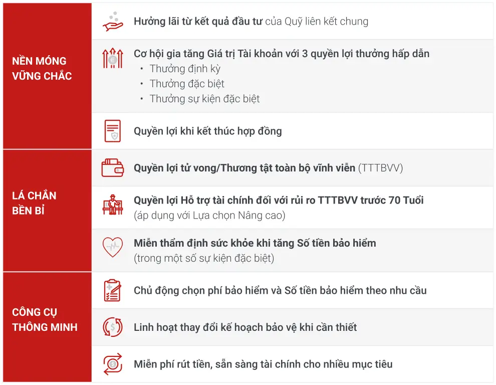 Linh hoạt thiết kế giải pháp bảo vệ theo nhu cầu, quản lý tài chính hiệu quả cho nhiều mục tiêu khác nhau.